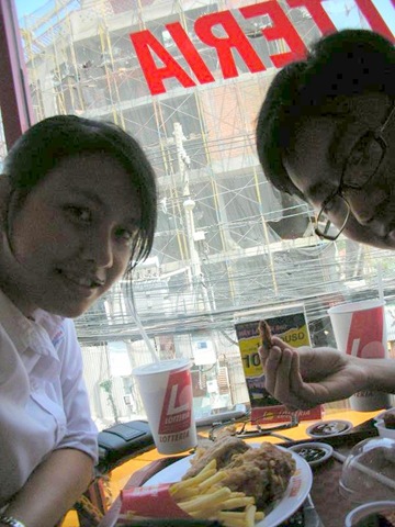Để ăn mừng cái 87 điểm này, mình quyết định dẫn bạn Thúy Anh đi ăn gà \:d/. Bạn này là người duy nhất online chúc mình trước lúc đi thi (/:) chả biết có chúc thật không nữa :"> :-"). Địa điểm là Lotte ngay cạnh BigC. Thời gian là sau lúc đi học về \:d/. Vào đó ăn uống chơi bời có hơn 30 phút mà chụp lại tới 16 tấm ảnh :">, khâm phục.